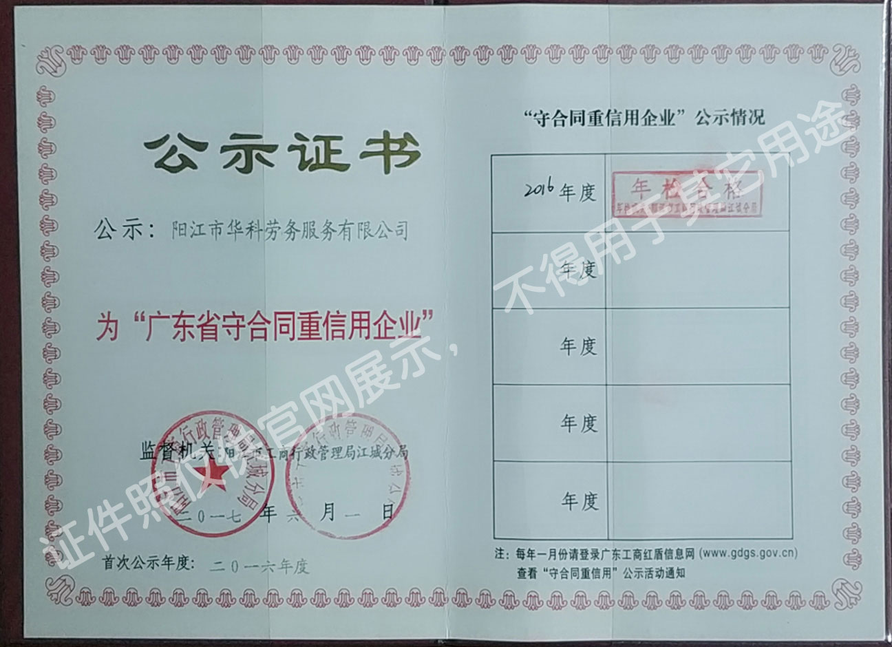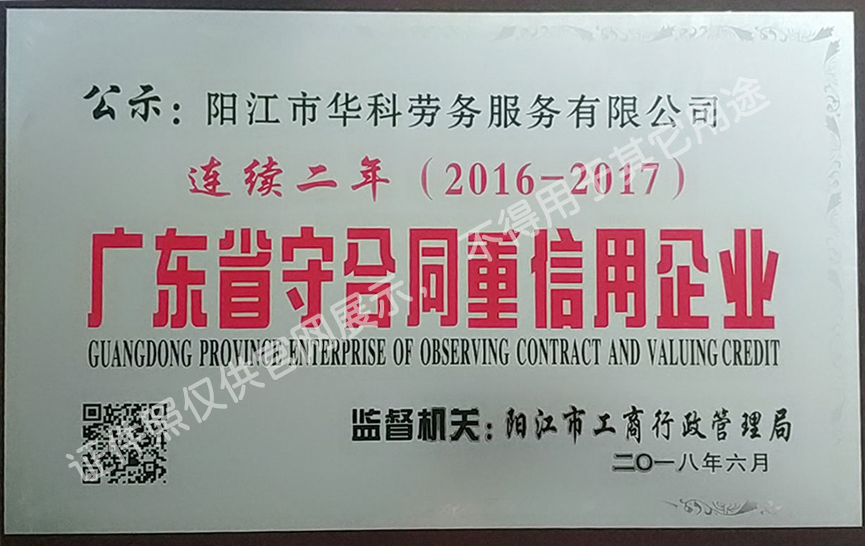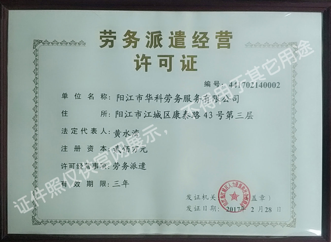 華科勞務(wù)服務(wù)有限公司是專業(yè)從事人事代理、勞務(wù)租賃、人力派遣及管理的綜合性服務(wù)機構(gòu),是首批獲得廣東省人力資源廳、陽江市勞動和社會保障局頒發(fā)人力資源許可證的合法單位。公司秉承“誠信務(wù)實、專業(yè)熱情、滿意第一、服務(wù)社群”的經(jīng)營理念,在勞務(wù)派遣業(yè)務(wù)的基礎(chǔ)上,更致力于合同制工人(臨時工、實習(xí)生、假期工)方向發(fā)展,為用工企業(yè)及時輸送合格的各類人才,合理調(diào)配人力資源的有序流動,幫助求職者尋求更加滿意的就業(yè)渠道和崗位,切實維護(hù)求職者的合法權(quán)益。